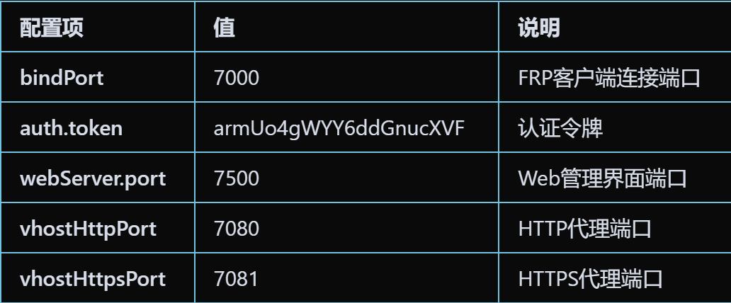 telnet localhost 7000📋 FRPS配置说明: