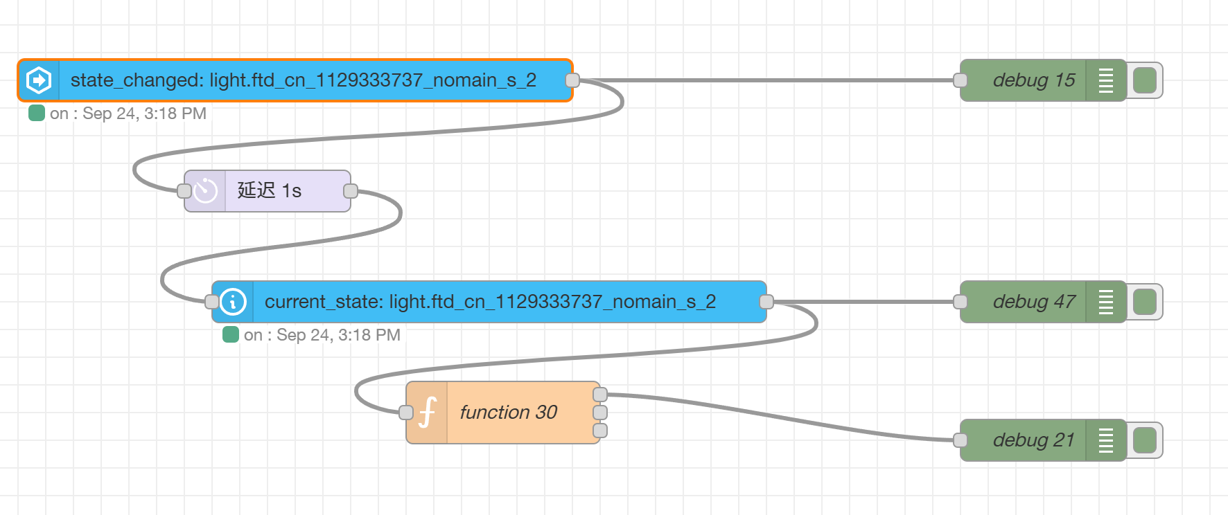 用NodeRed监控该灯具的属性动态变化,导引属性检查判断,符合条件执行不同流程.